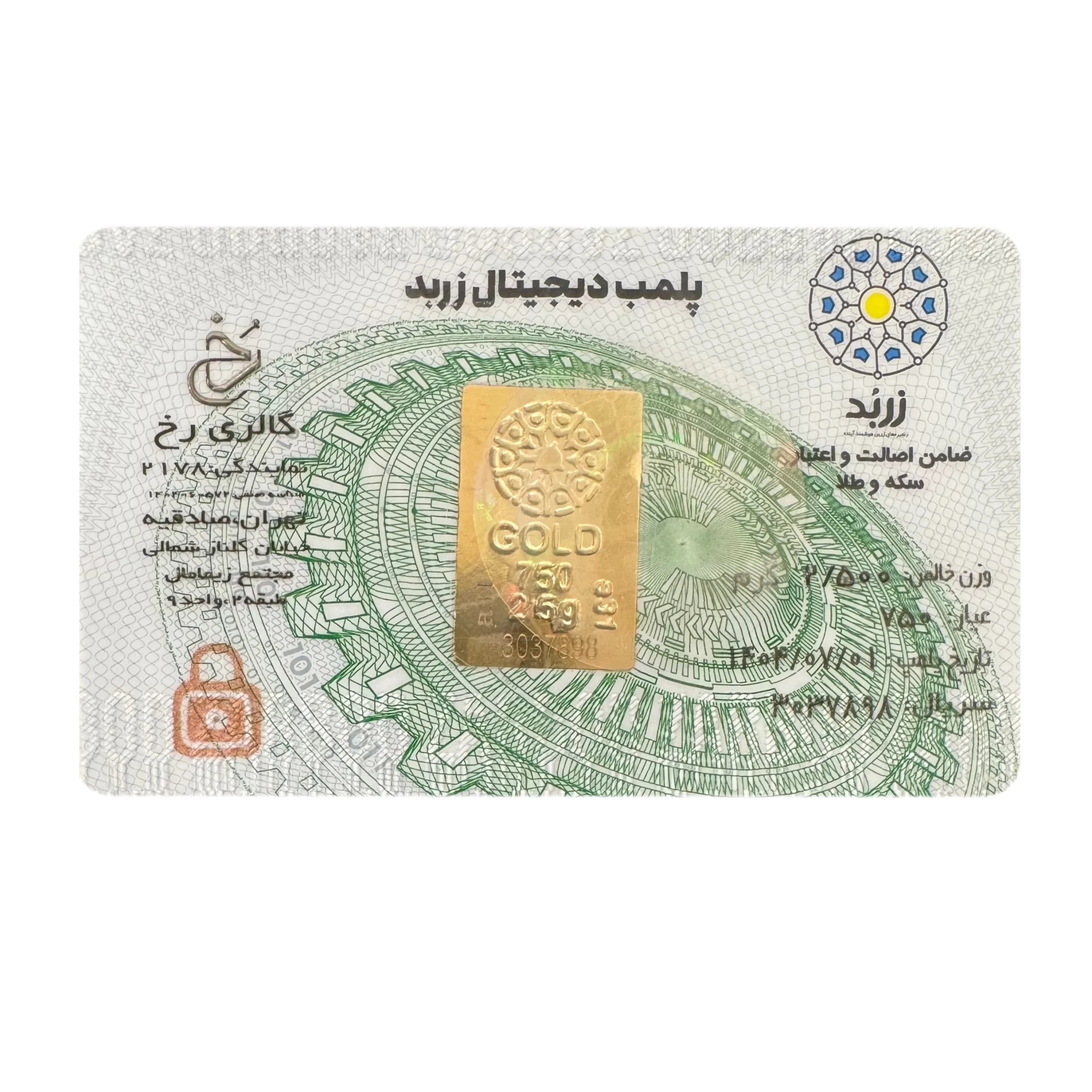 خرید شمش طلا ۲.۵ گرمی زربد ۱۸ عیار با بستهبندی پلمپ و عیار تضمینشده از رخ گلد را از دست ندهید!